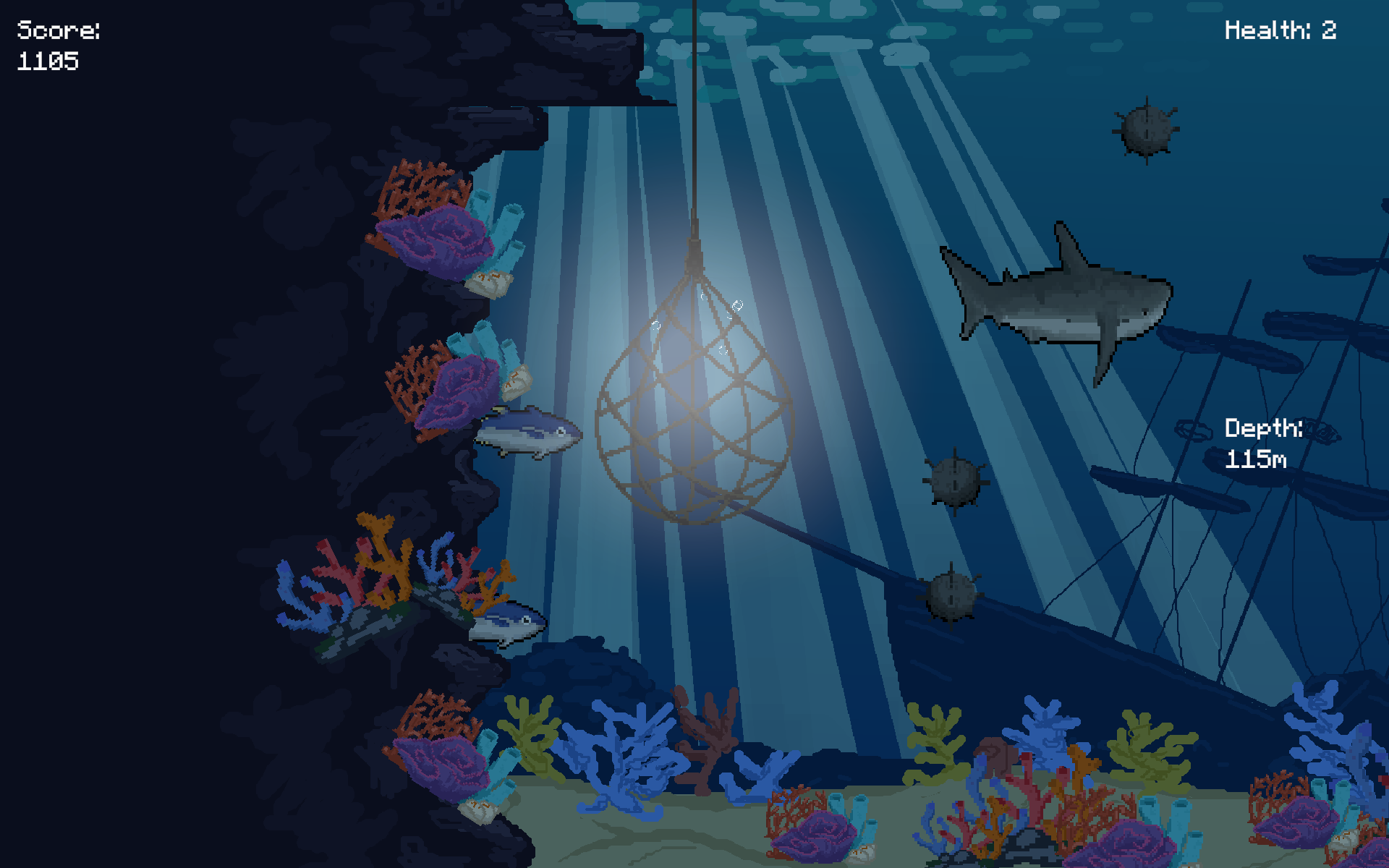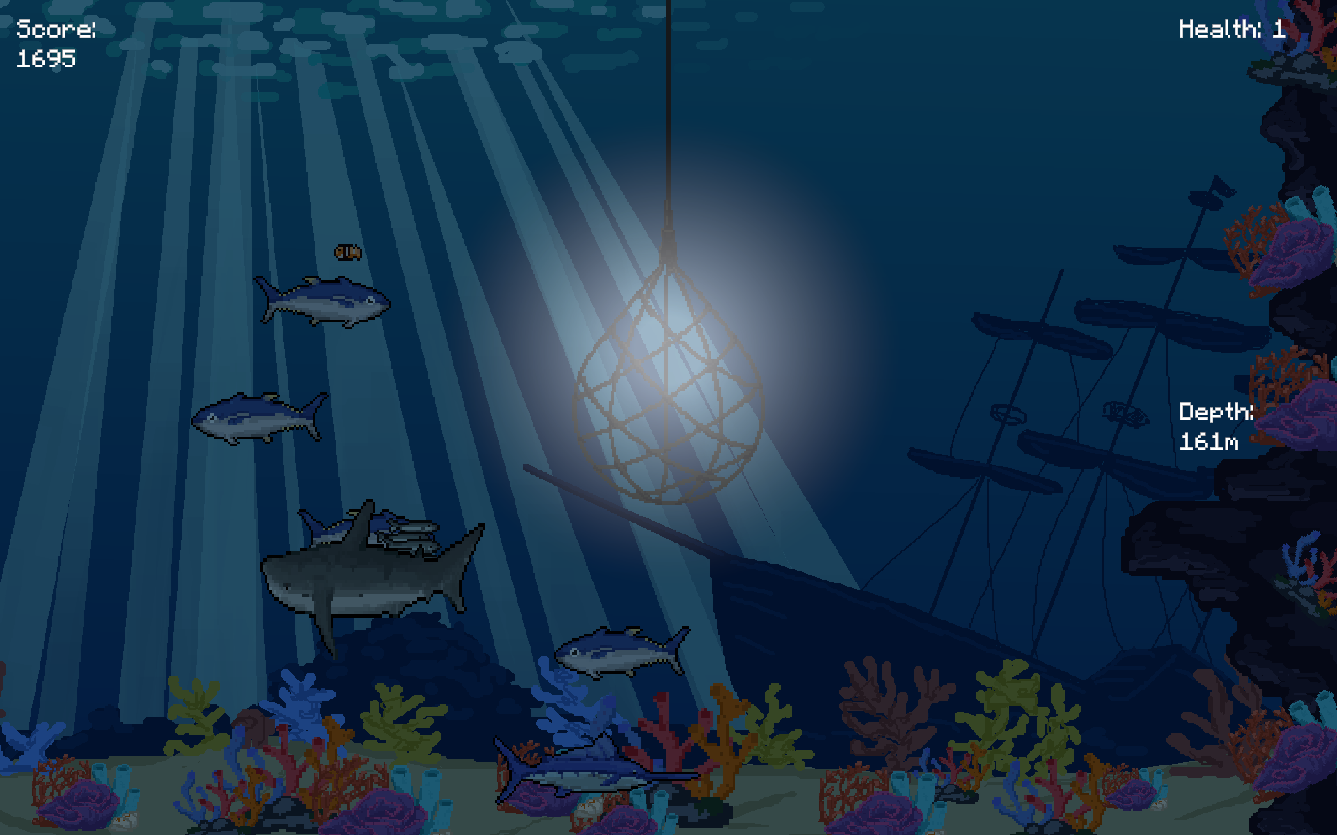 A Net Venture is a game about net fishing where you control a net and need to catch as many fish as you can without getting destroyed, or else... your catch is nothing. The deeper you go, the bigger the catch… and the bigger the risk.