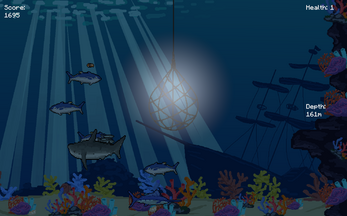 - Collect fishes while avoiding obstacles such as sharks and bombs